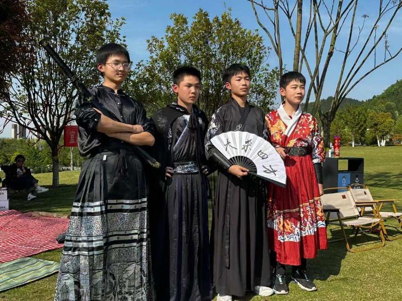 上巳正值暮春時節(jié),春天的特點是“生發(fā)”,所以民俗也提倡人們多活動,熱愛生命。為復(fù)原古人雅集盛況,活動還設(shè)置了傳統(tǒng)的運動項目——踢毽子和投壺,同學(xué)們穿著漢服,雖襟飄帶舞,卻不影響其大展身手。