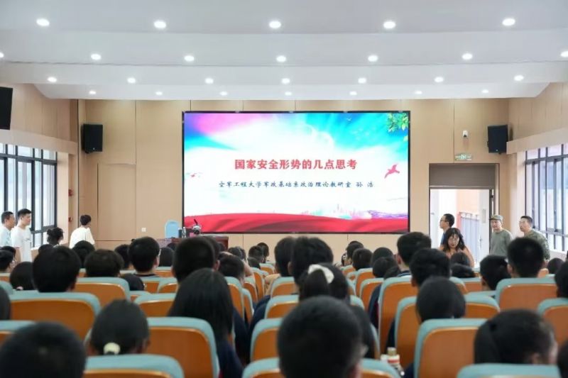 校園國防教育是全民國防教育的基礎。為進一步弘揚愛國主義精神,加強青少年思想政治建設,深入挖掘愛國主義精神內(nèi)涵,賡續(xù)紅色血脈,厚植國防教育情懷和愛黨、愛國、愛社會主義情感。26日下午,學校組織高一新生開展有關《國家安全形勢的幾點思考》專題教育講座。講座上來自空軍工程大學軍政基礎系政治理論教研室的孫浩教授從當前我國國家安全面臨的時代特征、風險挑戰(zhàn)以及防范化解國家安全風險的內(nèi)外條件三個方面細致地介紹了國家安全形勢及變化,在同學們心底種下了一顆愛國、擁軍、強軍的種子。